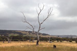Nachdem wir uns ausführlich von „unseren Koalas“ verabschiedet hatten, machten wir uns auf den Weg ans andere Ende der Insel. Für die letzte Nacht hatten wir dort einen Campingplatz gebucht. Wenn das Wetter sich gebessert hätte, wären wir vielleicht vorher nochmal in den Flinders Chase National Park gefahren um die Remarkable Rocks und vor allem den Admirals Arch besser fotografieren zu können. Aber der Himmel war weiterhin komplett grau und es regnete alle paar Minuten. Dazu war es auch wieder richtig ungemütlich kalt. Wir hoffen wirklich auf besseres Wetter die nächsten Tage.