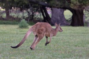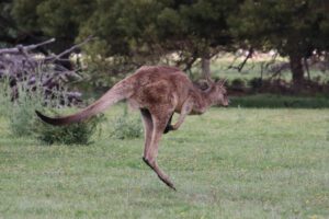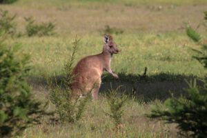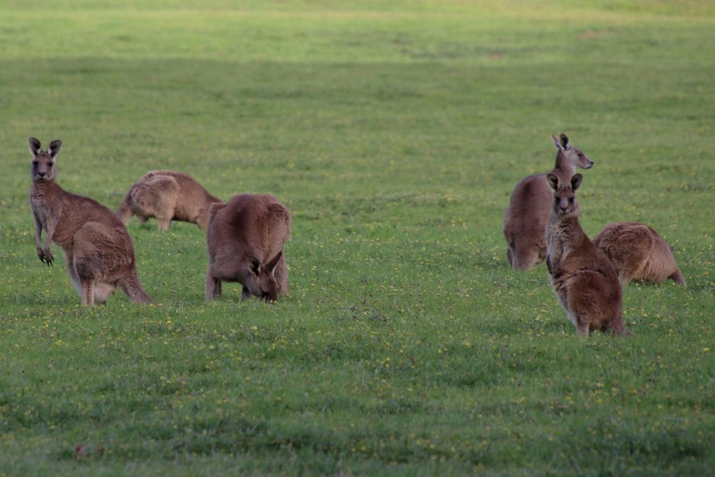 Als wir im Ort Halls Gap ankamen, entdeckten wir direkt auf einem Sportplatz Kängurus und suchten uns schnell einen Parkplatz. Die Kängurus waren nicht besonders scheu, aber bei Fotos musste man immer aufpassen keine Gebäude, Geländer o.Ä. mit auf dem Bild zu haben.