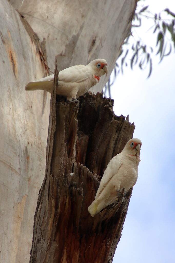 Auf dem schönen neuen Platz haben wir jetzt nur noch verschiedene Arten von Kakadus als Nachbarn. Besonders gut gefielen uns die Gelbhaubenkakadus, wenn sie ihre Haube aufrichteten. Leider passierte das aber immer so überraschend und war dann so schnell wieder vorbei, dass wir davon kein Bild haben.