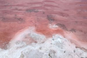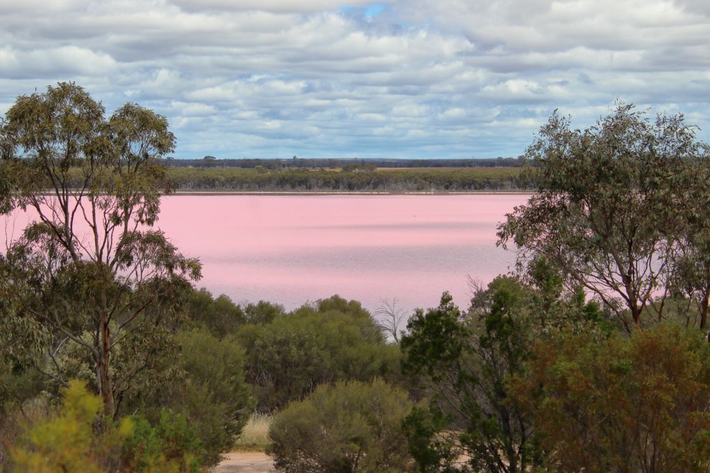 Zum Mittagessen hielten wir an einem Rastplatz mit dem Namen Pink Lake. Und der vom Rastplatz sichtbare See war tatsächlich sehr rosa, sobald die Sonne herauskam.