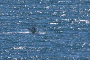 Nach ein paar Mal Auftauchen tauchten die beiden ab und wir sahen sie nicht wieder. Vermutlich waren sie aus unserem Blickfeld hinter einer Insel verschwunden. Das passte zumindest zu ihrer bisherigen Bewegungsrichtung. Wir setzten uns auf die Felsen und suchten noch eine Weile erfolglos das Meer nach weiteren Walen ab. Nachdem ich mir die Fotos etwas genauer angeschaut und ein bisschen recherchiert habe, gehe ich davon aus, dass es sich um Buckelwale handelt.