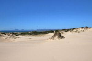 Als erstes führte uns unser Weg heute zu den Peron Dunes. Auch hier hatten wir ziemlich recherchiert, um herauszufinden, wo man sie am besten erreicht und wo man ein Wohnmobil parkt.