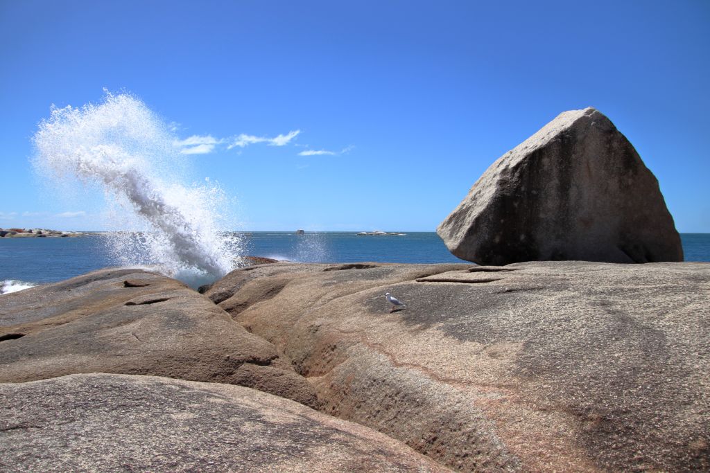 Da das Blowhole gar nicht so weit entfernt war, beschlossen wir an der Küste entlang weiter zu gehen und nicht umzukehren und umzuparken. Auch das Blowhole überraschte uns positiv. Immer wieder wurde eine ordentliche Fontäne hinaus gesprüht. Fotos und Videos waren zeitweise etwas schwierig, da wir hier nicht alleine waren und einige Personen sich immer wieder nah an das Blowhole stellten.