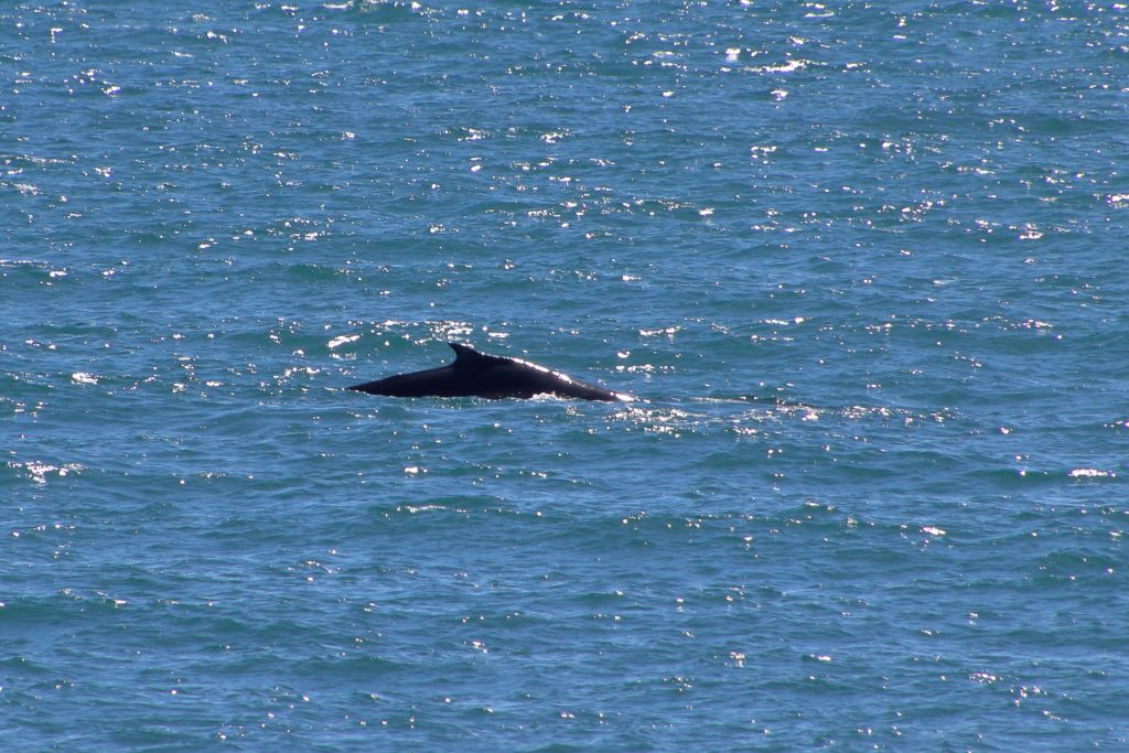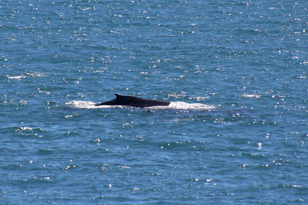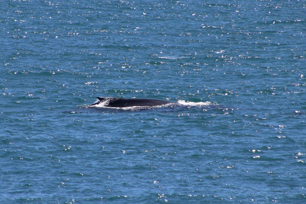 Nach ein paar Mal Auftauchen tauchten die beiden ab und wir sahen sie nicht wieder. Vermutlich waren sie aus unserem Blickfeld hinter einer Insel verschwunden. Das passte zumindest zu ihrer bisherigen Bewegungsrichtung. Wir setzten uns auf die Felsen und suchten noch eine Weile erfolglos das Meer nach weiteren Walen ab. Nachdem ich mir die Fotos etwas genauer angeschaut und ein bisschen recherchiert habe, gehe ich davon aus, dass es sich um Buckelwale handelt.