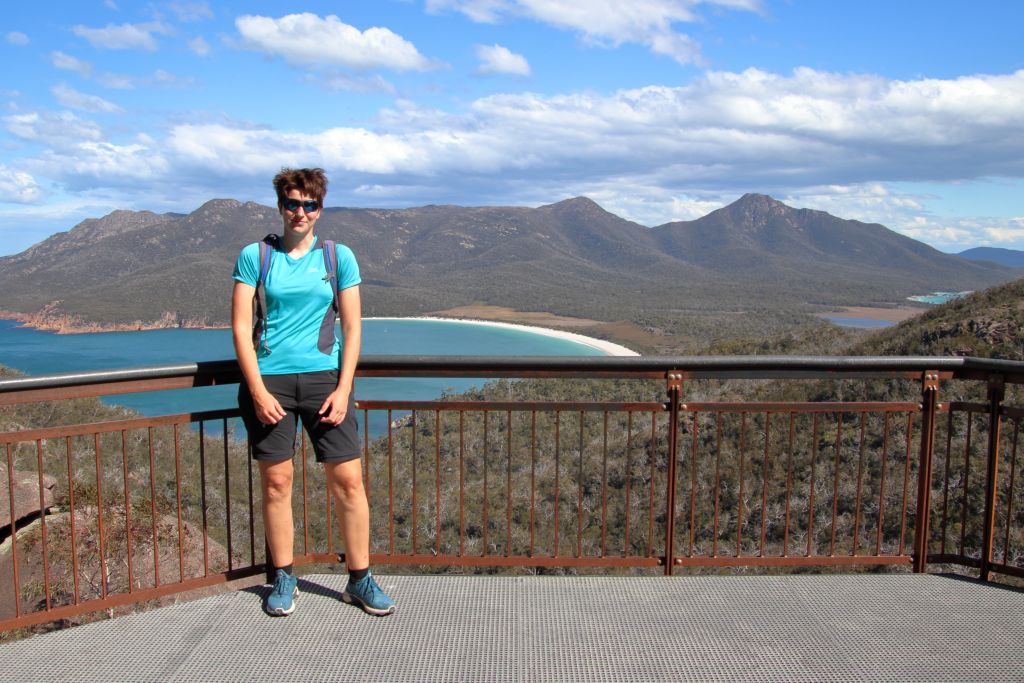 Oben angekommen wurden wir nicht enttäuscht. Die Aussicht auf die Wineglass Bay ist wirklich toll.