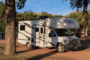 Der Campingplatz ist ziemlich groß, aber nicht besonders voll. Die Saison neigt sich auch hier dem Ende entgegen. Uns ist das recht. Wir haben wieder keine direkten Nachbarn und konnten uns noch einen Platz unter Bäumen aussuchen. Erst hatten wir einen auf dem offenen Feld bekommen, der zwar unserem bei der Buchung angegebenen Wunsch nach einem Randplatz entsprach, aber bei knapp 30 Grad und strahlendem Sonnenschein nicht so einladend wirkte. Wir wollen uns nicht über die Temperaturen beschweren. Ganz im Gegenteil, wir sind froh wieder im Sommer angekommen zu sein nach den kalten und nassen Tagen im Yellowstone.