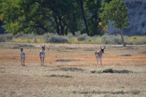 Während wir auf die Bisons warteten, liefen drei Gabelböcke vorbei.