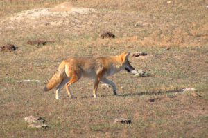 Da es noch ziemlich früh war, als wir wieder zurück am Parkplatz waren, beschlossen wir nochmal in den Südteil des Parks zu fahren in der Hoffnung die Bisonherde von gestern wieder zu finden. Und tatsächlich waren sie wieder in der Nähe der Straße ein kleines Stück vor der gestrigen Stelle. Nachdem wir sie eine Weile fotografiert hatten, fuhren wir bis zur gestrigen Bisonstelle weiter und kehrten dann um. Auf dem Rückweg sahen wir noch einen Kojoten.