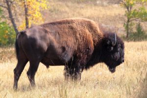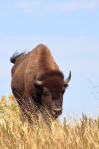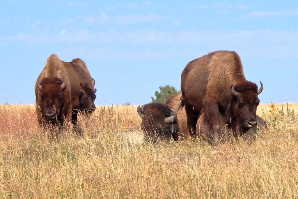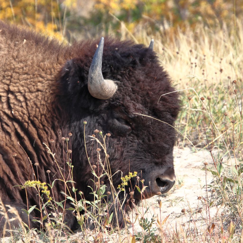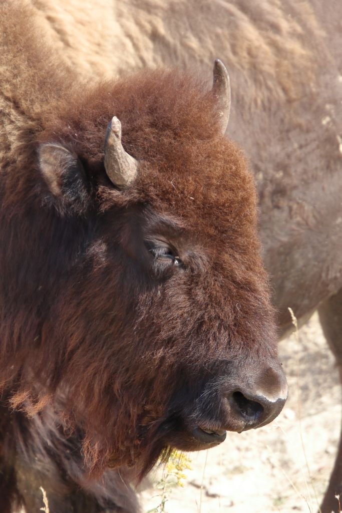 Zwischen den Aussichtspunkten hatten wir mehrmals Bisons direkt neben uns an der Straße. Und wir konnten sogar in Ruhe halten, da hier so wenig los ist.