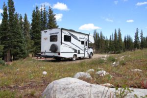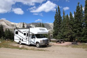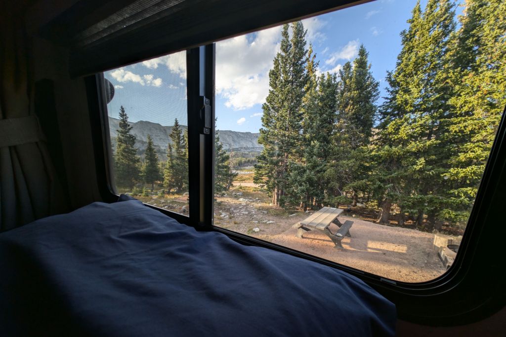 Anschließend ging es dann endlich in den Medicine Bow-Routt National Forest. Wir fuhren direkt auf unseren Campingplatz Sugarloaf. Unser bei der Online-Reservierung ausgewählter Platz war eine gute Wahl. Er liegt sehr schön mit toller Aussicht.