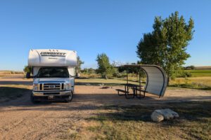 Fahren, fahren, fahren war die Devise für den heutigen Tag. Wir mussten über 500 Kilometer vom Badlands Nationalpark in South Dakota durch Nebraska bis in den North Sterling State Park in Colorado kommen. Der State Park interessiert uns eigentlich nicht. Er liegt nur auf dem Weg zum Rocky Mountain Nationalpark und es gibt dort einen Campingplatz, der nicht so teuer ist und dessen Bewertungen halbwegs ok sind.