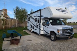 Durch die Verzögerungen erreichten wir unseren Campingplatz wieder viel später als geplant. Und es wartete auch direkt die nächste Überraschung auf uns: Unser Frischwasserschlauch ist kaputt. Da hat uns Road Bear super Material angedreht. Für heute konnten wir auf dem Campingplatz einen leihen. Hoffentlich bekommen wir morgen, an einem Sonntag, irgendwo einen neuen. Wir haben schon einen Baumarkt in Pinedale ausfindig gemacht, der sonntags um 8 Uhr öffnet und laut Website so ähnliche Schläuche hat, wie wir brauchen. Natürlich wird uns das auch wieder Zeit kosten, aber vielleicht haben wir ja Glück und finden dort tatsächlich einen passenden Schlauch. Wenigstens ist der Campingplatz hier sehr schön angelegt für einen städtischen Platz und die Besitzer sind super hilfsbereit.