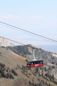 Auf unserem Weg Richtung Grand Teton Nationalpark legten wir heute noch einen Zwischenstopp in Jackson Hole ein. Für Wohnmobile gibt es einen etwas größeren Parkplatz ein kleines Stück von der Talstation entfernt. Als wir dort geparkt hatten, kam direkt ein Shuttlebus an. Sonst hätte man das kurze Stück aber sicher auch laufen können.