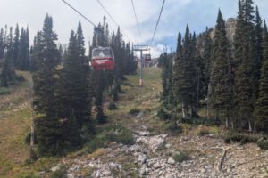 Mit der Bridger Gondola fuhren wir dann wieder zurück ins Tal. Unter uns konnten wir beobachten, wie sich Mountainbiker auf Trails waghalsig ins Tal stürzten.