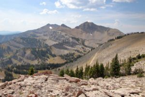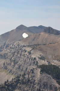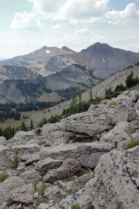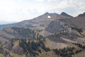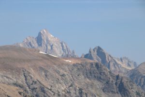 Von oben hatten wir eine tolle 360 Grad Sicht. Ins Tal hinunter war es sehr diesig, aber der Grand Teton und seine Nachbargipfel waren wunderbar zu sehen.