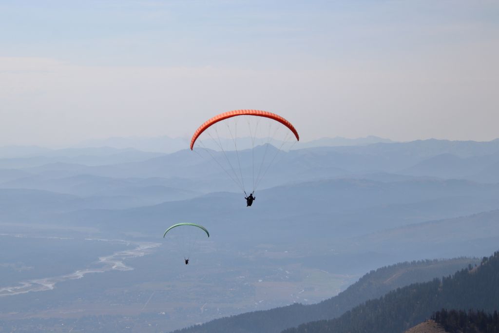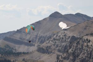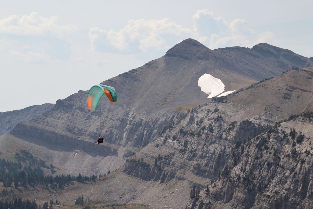 Nach einem Picknick mit sehr schöner Aussicht gingen wir noch den Top of the World Trail. Der Rendezvous Peak scheint ein beliebter Startpunkt für Paraglider zu sein. Wir konnten mehreren beim Start zusehen.