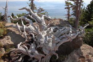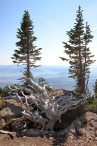 Neben den weiterhin schönen Fernsichten hatte der Trail auch noch ein hübsches Detail zu bieten: Eine sehr dekorative Wurzel umrahmt von Bäumen.